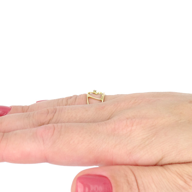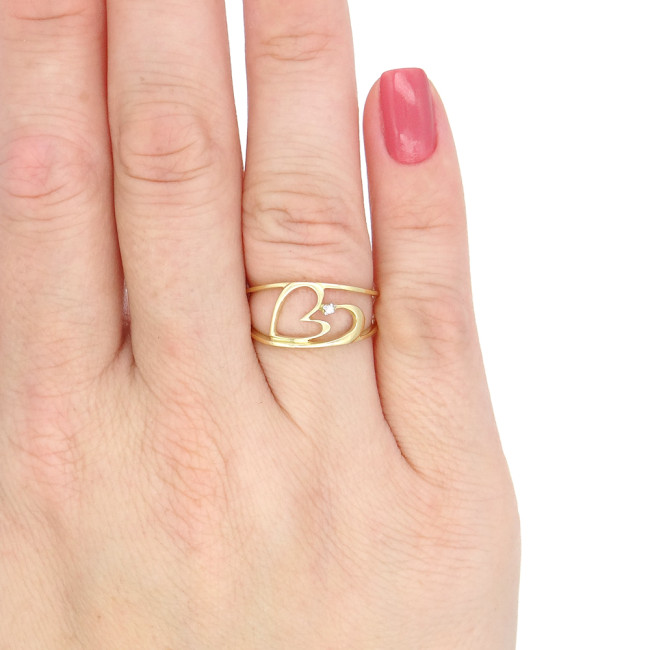 Anel Coração com Diamante, em Ouro Amarelo 18 Kilates