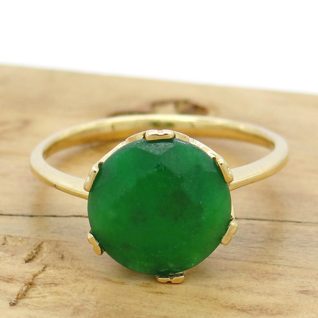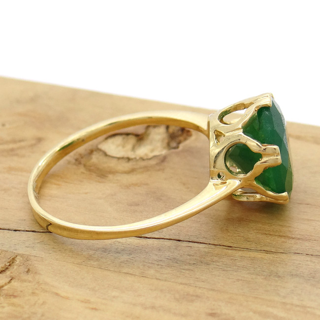 Anel Coroa com Ágata Esmeralda, em Ouro Amarelo 18 Kilates