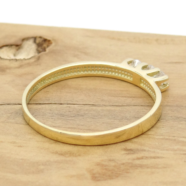Anel Estilo Solitário com 3 Diamantes Totalizando 15 Pontos, em Ouro Amarelo 18 Kilates