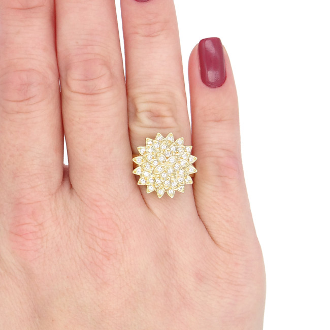 Anel  Flor com 40 Diamantes, em Ouro Amarelo 18 Kilates