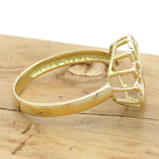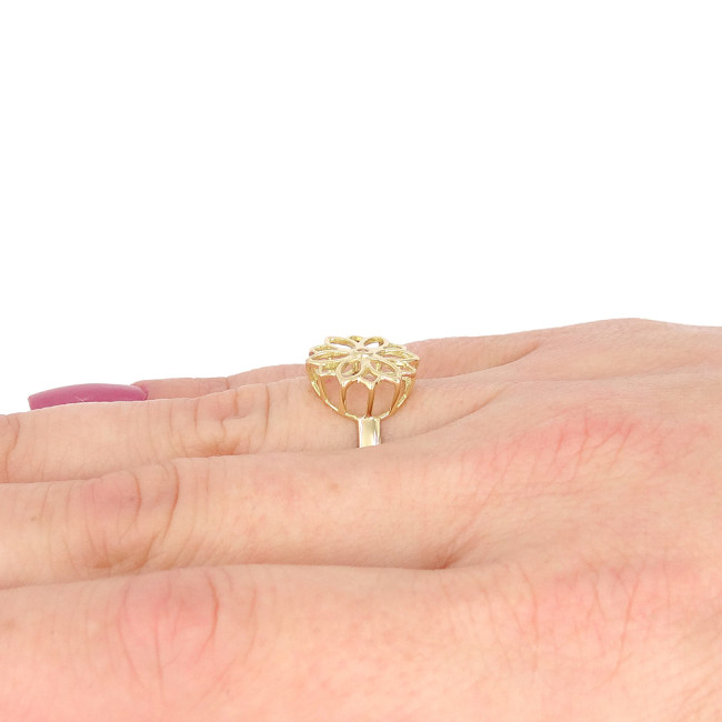 Anel Flor Trabalhado com 1 Diamante, em Ouro Amarelo 18 Kilates