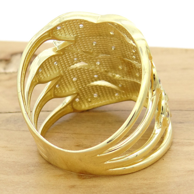 Anel Floral com 34 Diamante, em Ouro Amarelo 18 Kilates