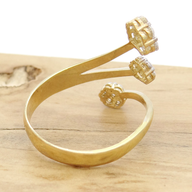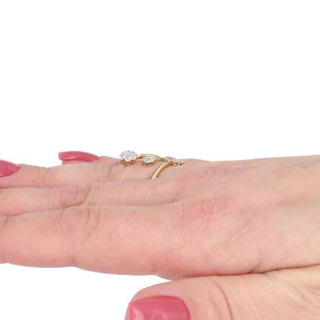 Anel Floral com 35 Pontos de Diamantes, em Ouro Amarelo 18 Kilates
