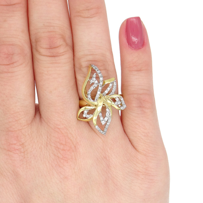 Anel Floral Vazado com 50 Diamantes, em Ouro Amarelo 18 Kilates