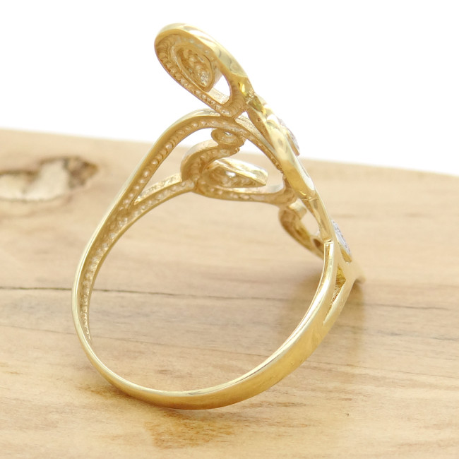 Anel  Floral Vazado com 6 Diamantes, em Ouro Amarelo 18 Kilates