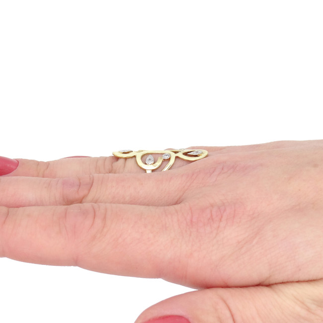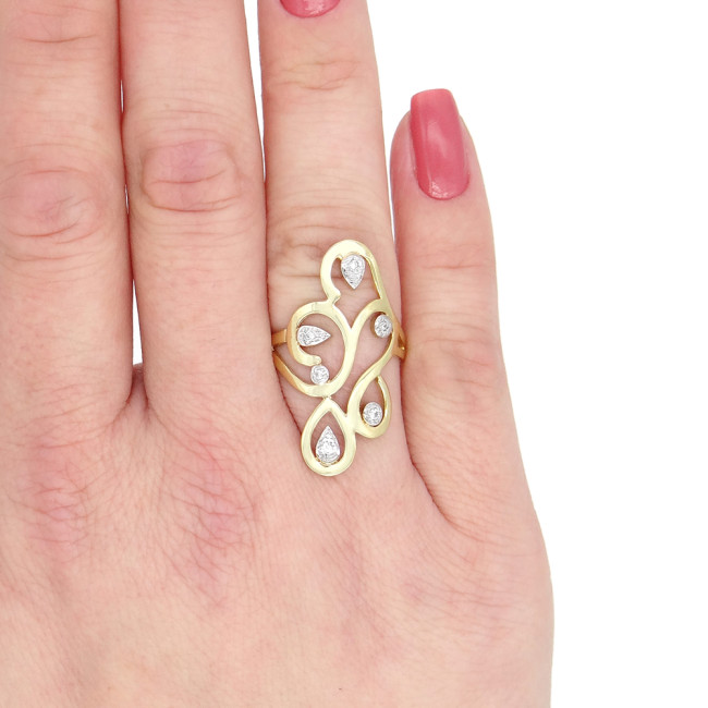 Anel Floral Vazado com 6 Diamantes, em Ouro Amarelo 18 Kilates