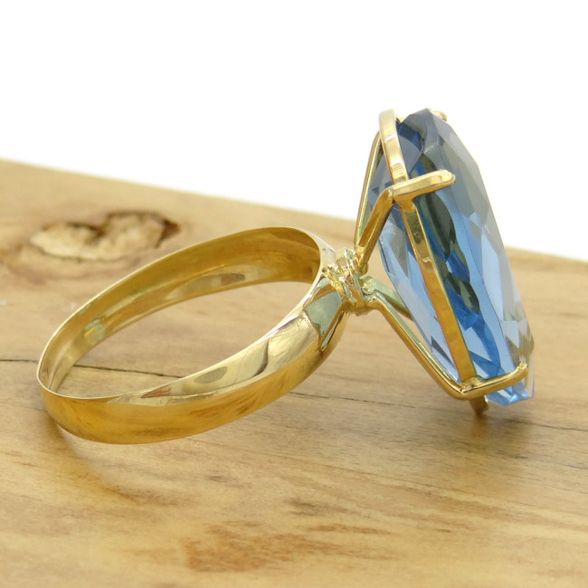 Anel Gota com Sky Blue, em Ouro Amarelo 18 Kilates