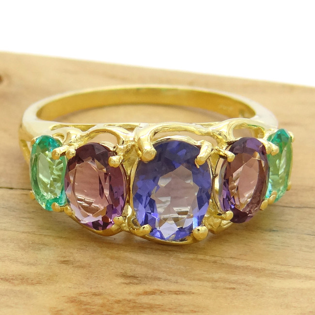 Anel Mix de Gemas Brasileiras, em Ouro Amarelo 18 Kilates