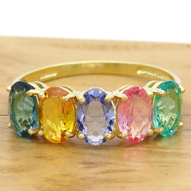 Anel Mix de Pedras Brasileiras, em Ouro Amarelo 18 Kilates