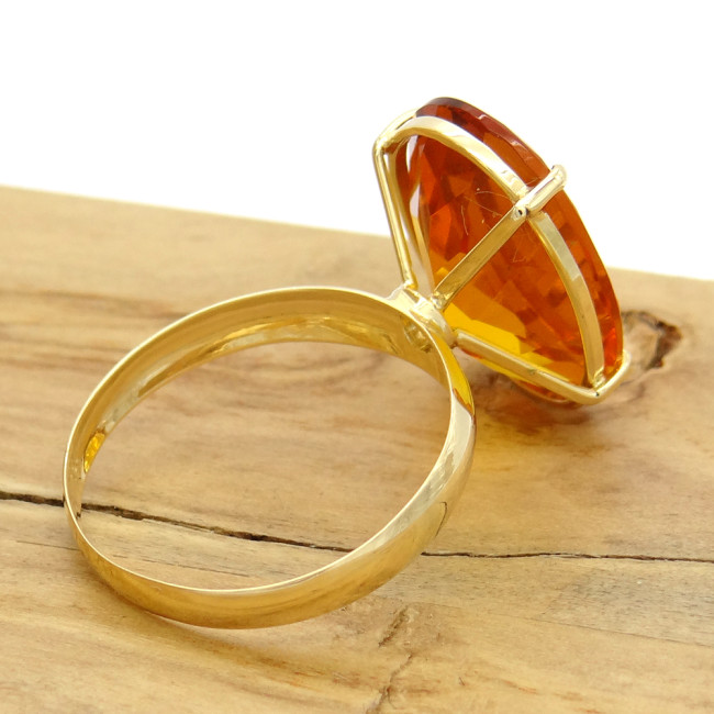 Anel Oval com Citrino, em Ouro Amarelo 18 Kilates