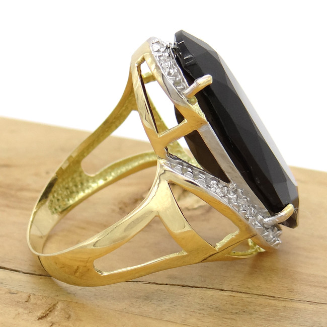 Anel Oval com Ônix e 10 Diamantes, em Ouro Amarelo 18 Kilates