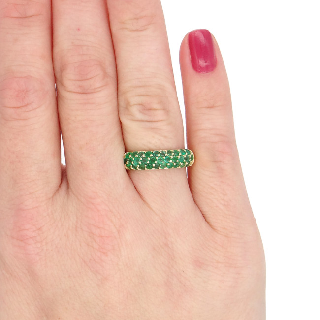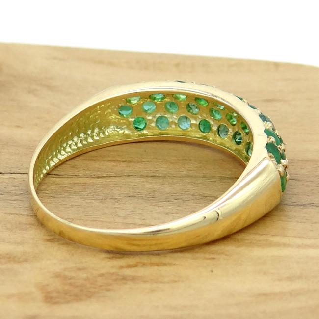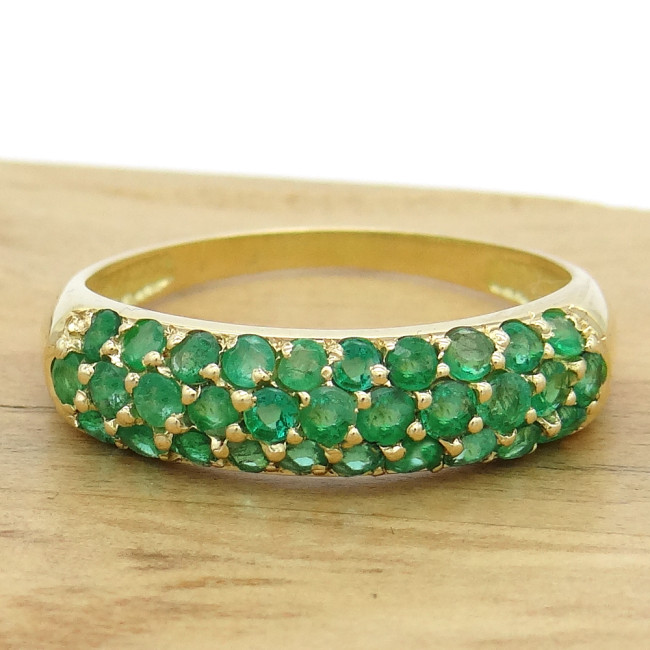 Anel Pavê com 31 Esmeraldas, em Ouro Amarelo 18 Kilates