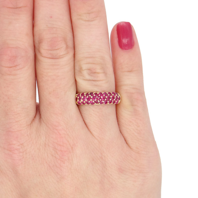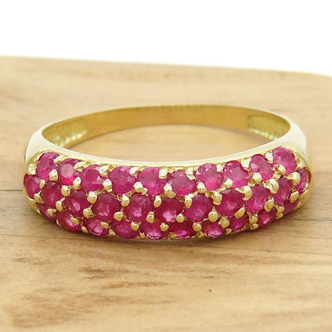 Anel Pavê com 31 Rubis, em Ouro Amarelo 18 Kilates