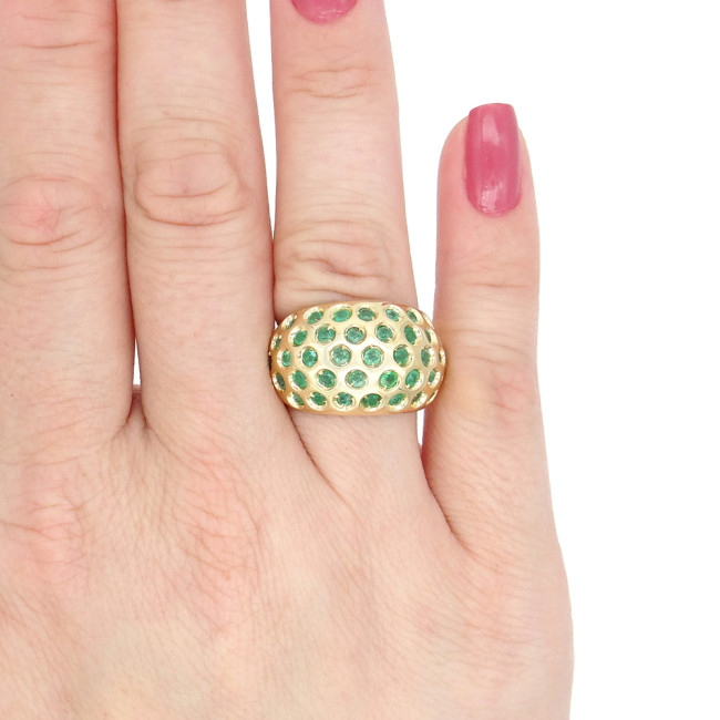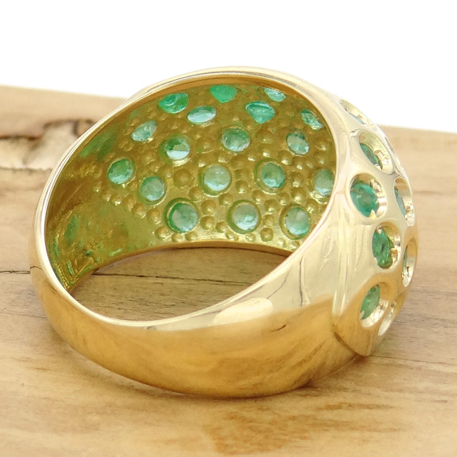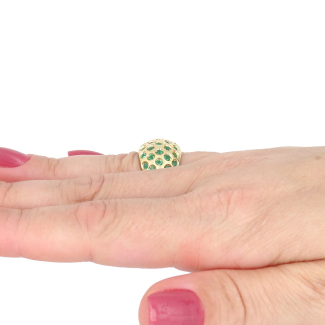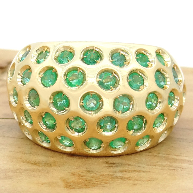 Anel Pavê com 39 Esmeraldas, em Ouro Amarelo 18 Kilates
