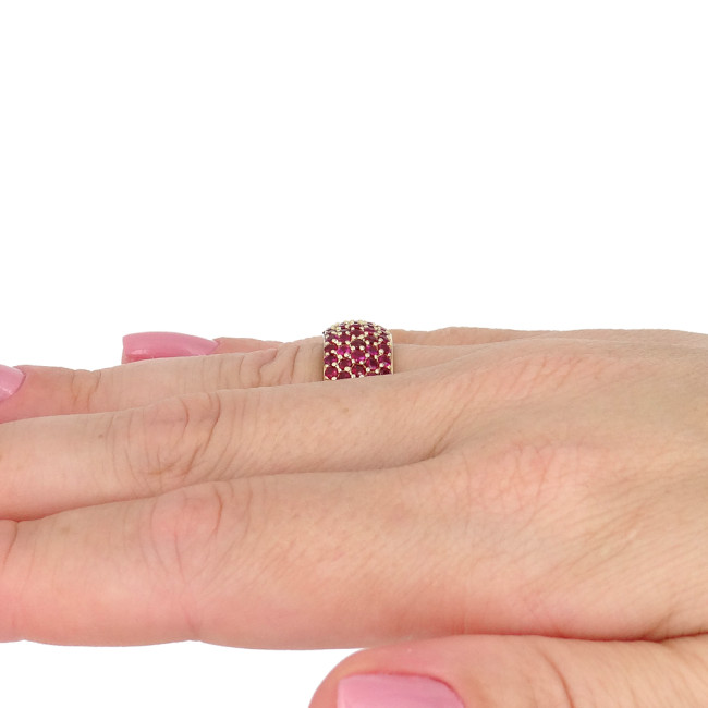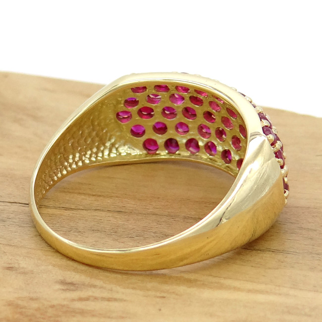 Anel Pavê com 49 Rubis, em Ouro Amarelo 18 Kilates