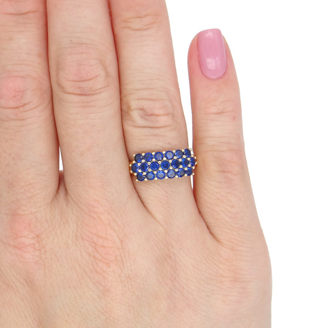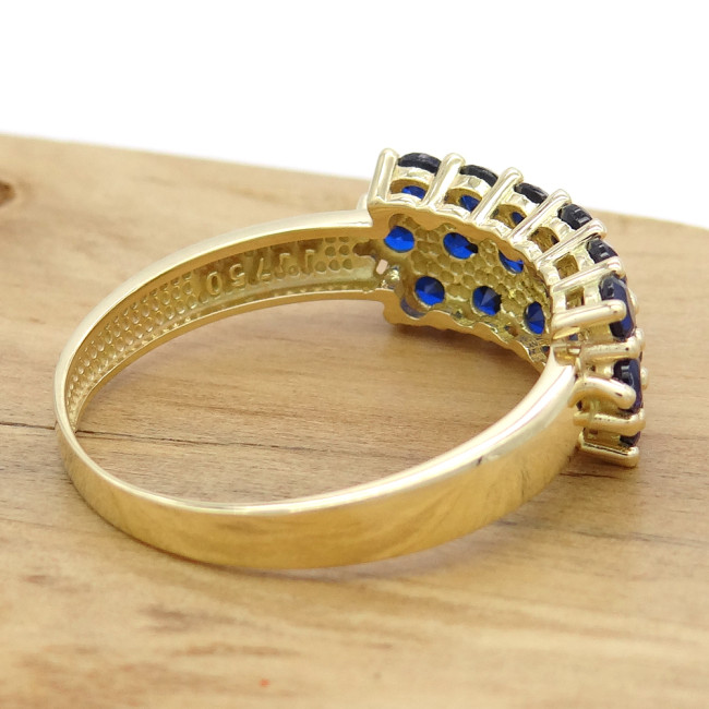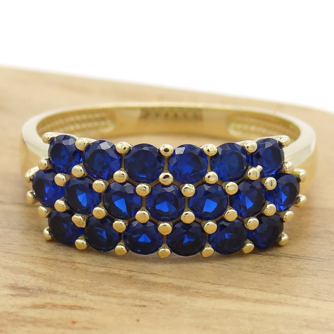 Anel Pavê com Zirconias Safiras, em Ouro Amarelo 18 Kilates