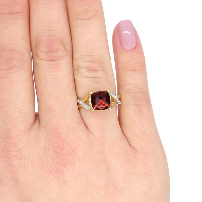 Anel Quadrado com Quartzo Rubi e 10 Diamantes, em Ouro Amarelo 18 Kilates