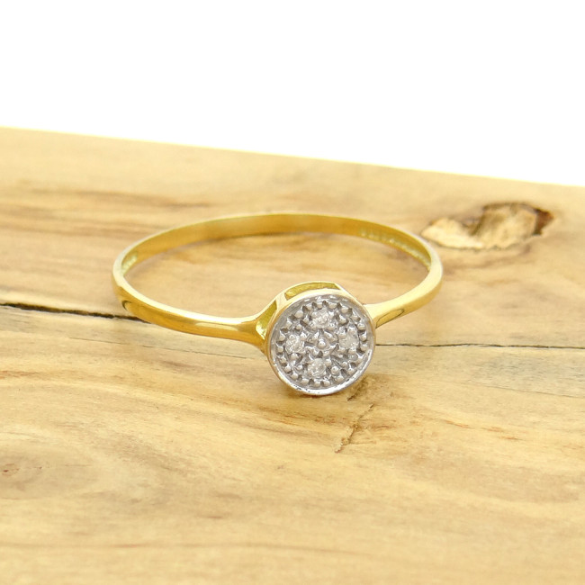 Anel Redondo com 4 Diamantes, em Ouro Amarelo 18 Kilates