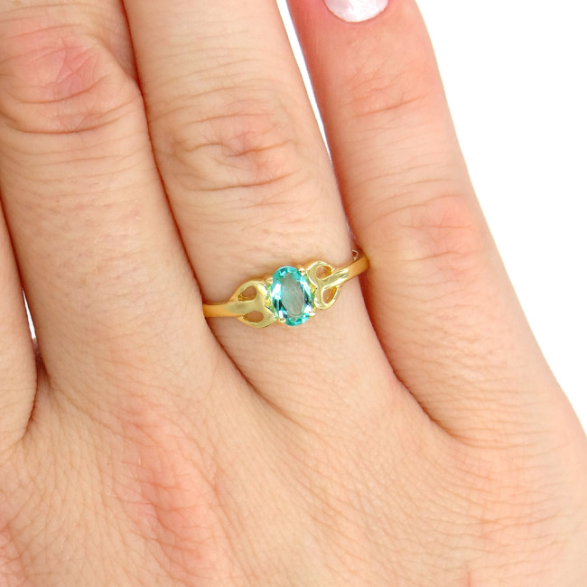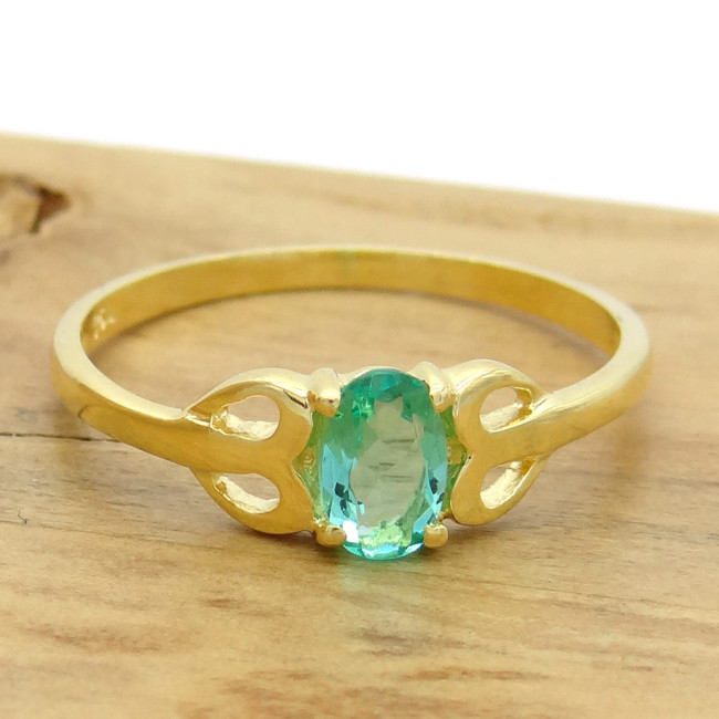 Anel Solitário com Cristal de Turmalina Paraíba, em Ouro Amarelo 18 Kilates