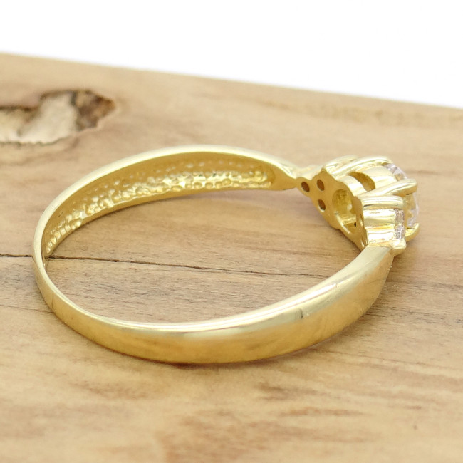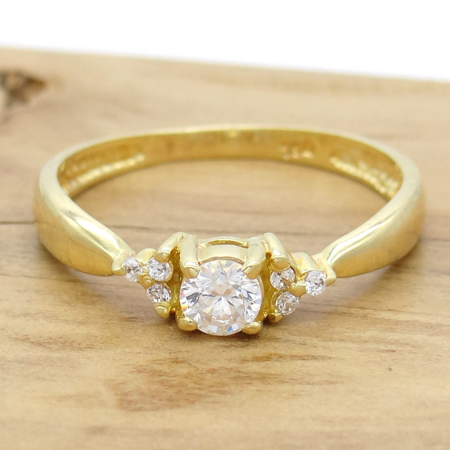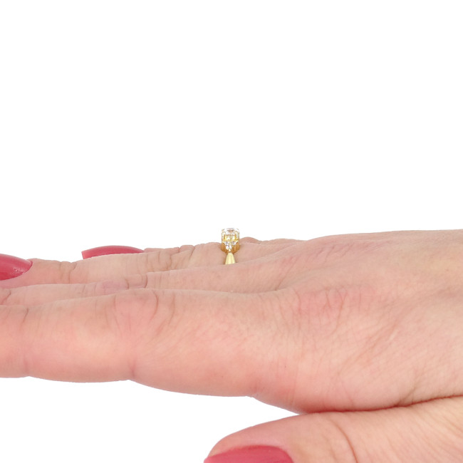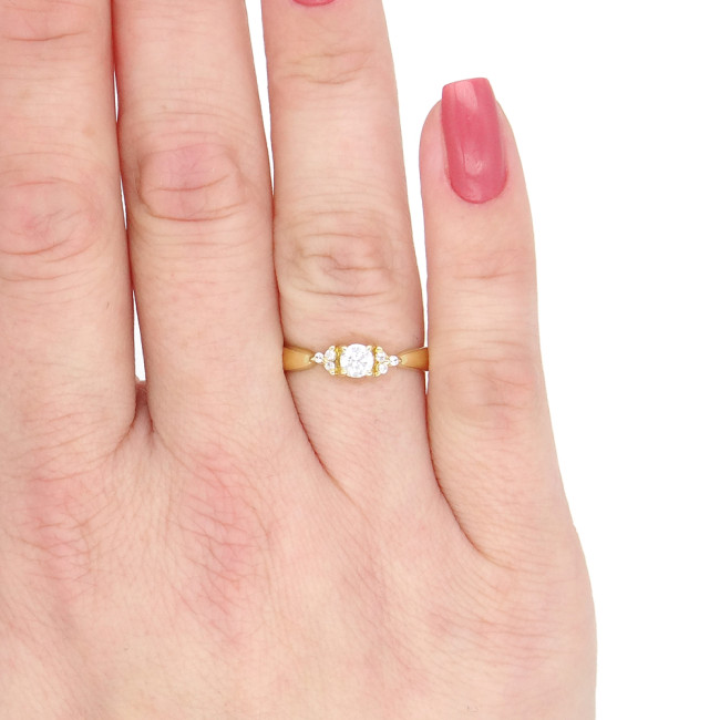 Anel Solitário com Diamante Central de 25 Pontos e 6 Diamantes Laterais, em Ouro Amarelo 18 Kilates