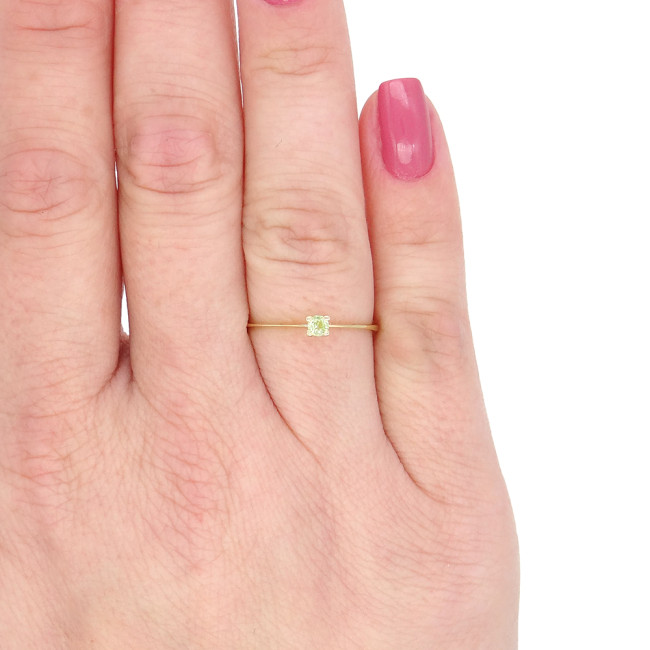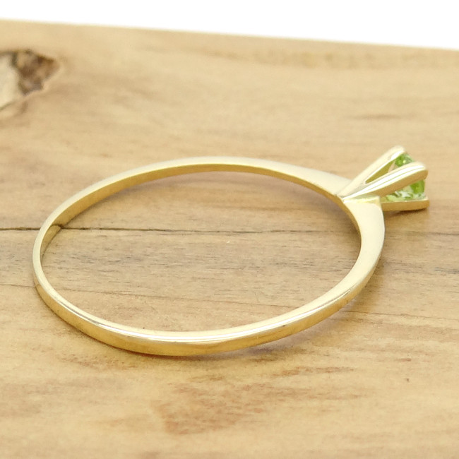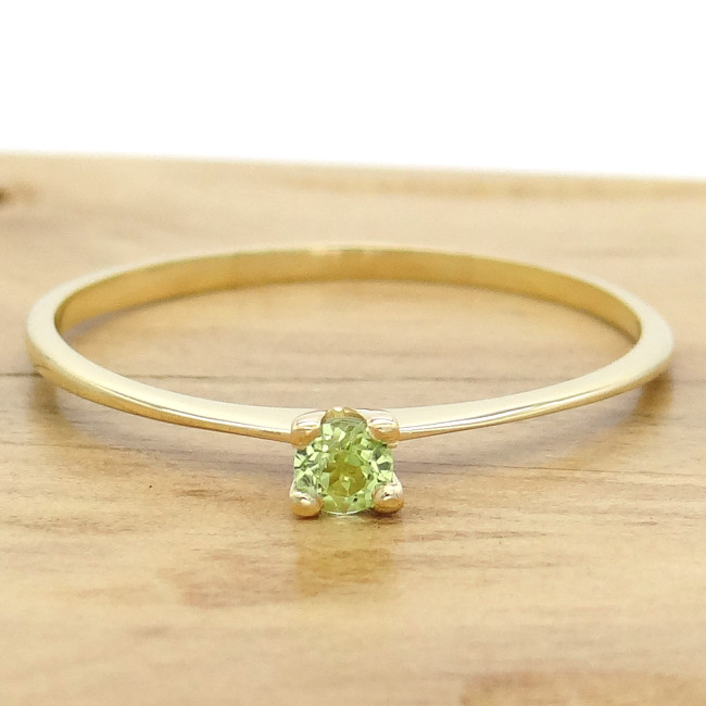 Anel Solitário com Peridoto Natural de 10 Pontos, em Ouro Amarelo 18 Kilates