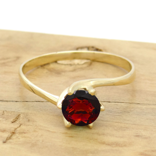 Anel Solitário com Quartzo Rubi, em Ouro Amarelo 18 Kilates