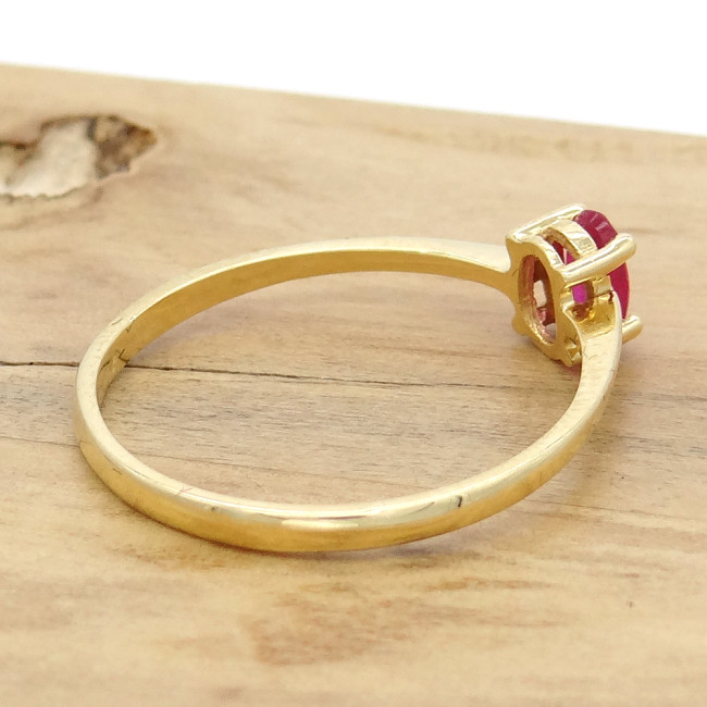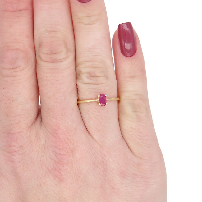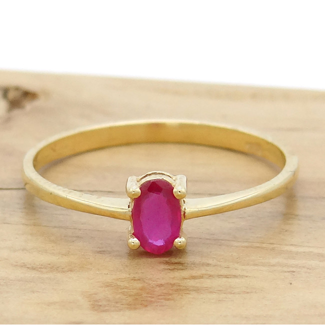 Anel Solitário com Rubi de 35 Pontos, em Ouro Amarelo 18 Kilates