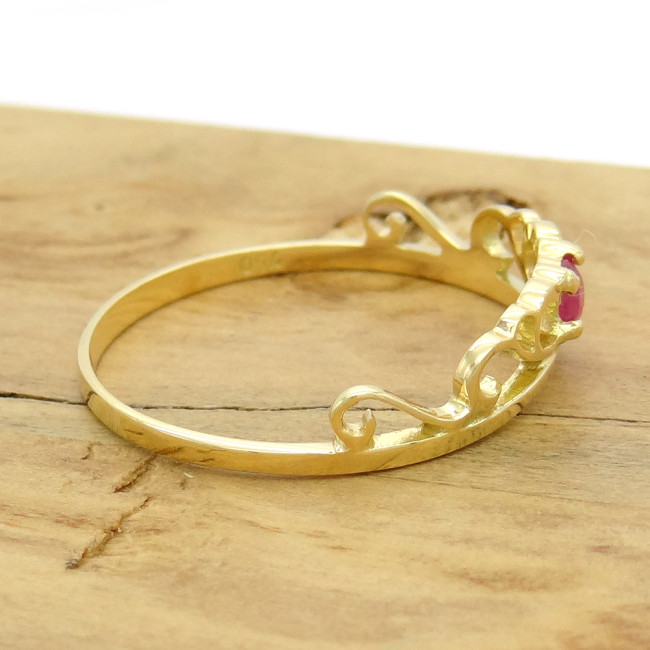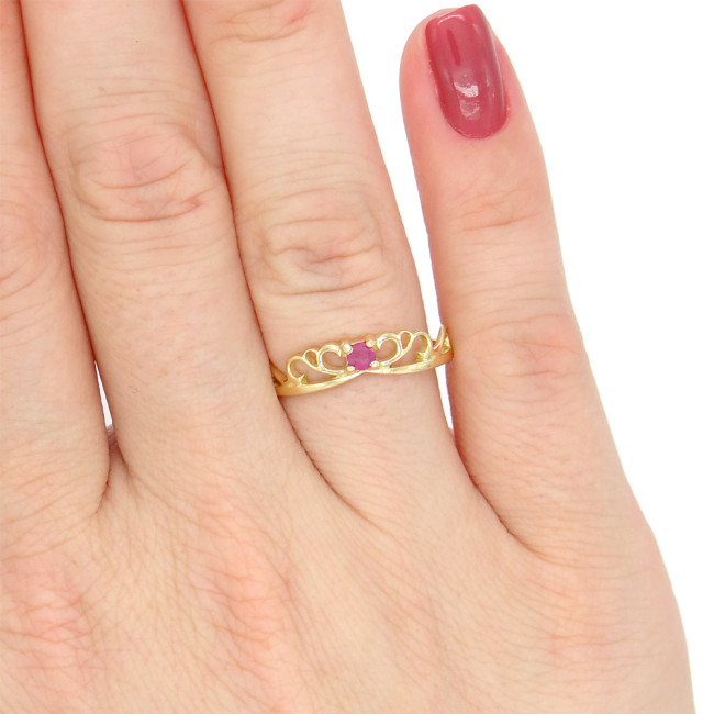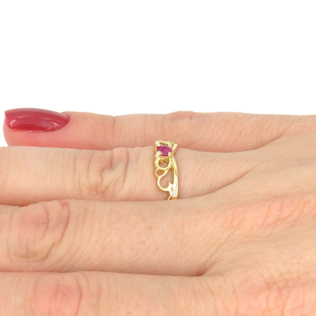 Anel Solitário Tiara com Rubi, em Ouro Amarelo 18 Kilates