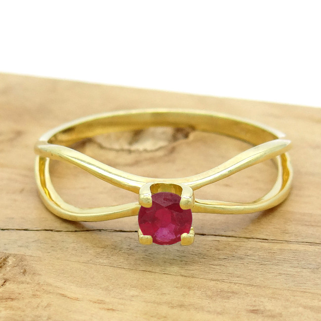Anel Solitário com Rubi, em Ouro Amarelo 18 Kilates
