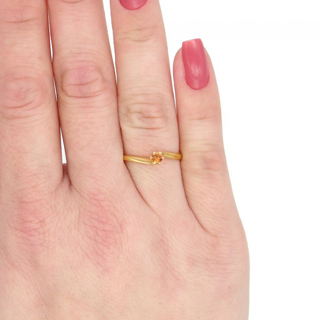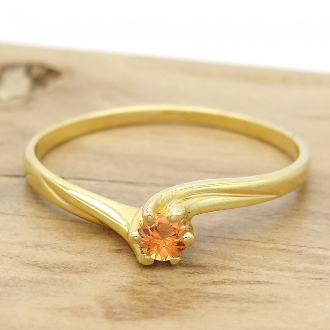 Anel Solitário com Safira Laranja Natural de 15 Pontos, em Ouro Amarelo 18 Kilates