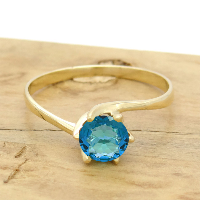 Anel Solitário com Sky Blue, em Ouro Amarelo 18 Kilates