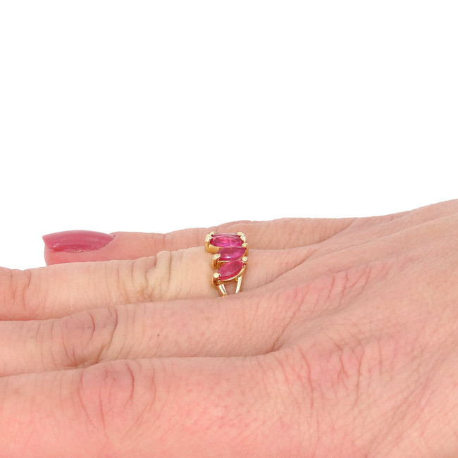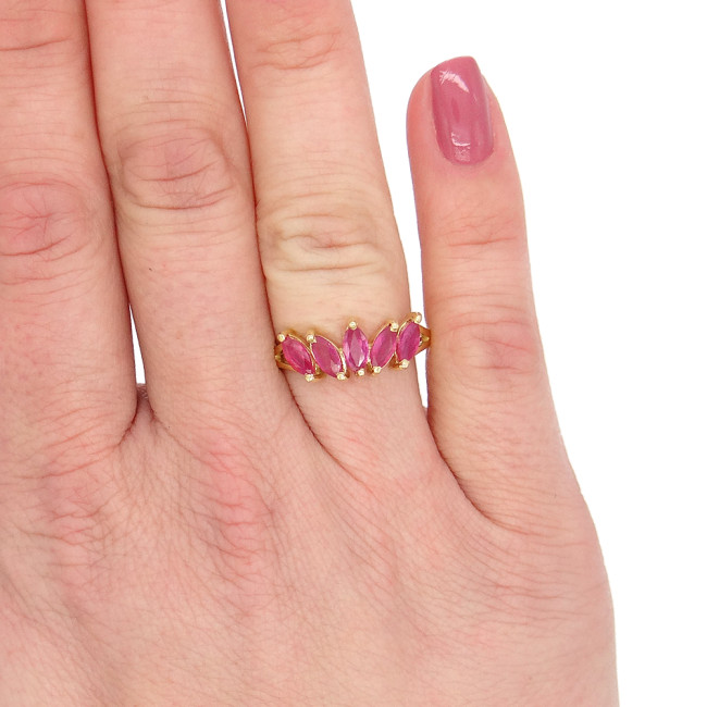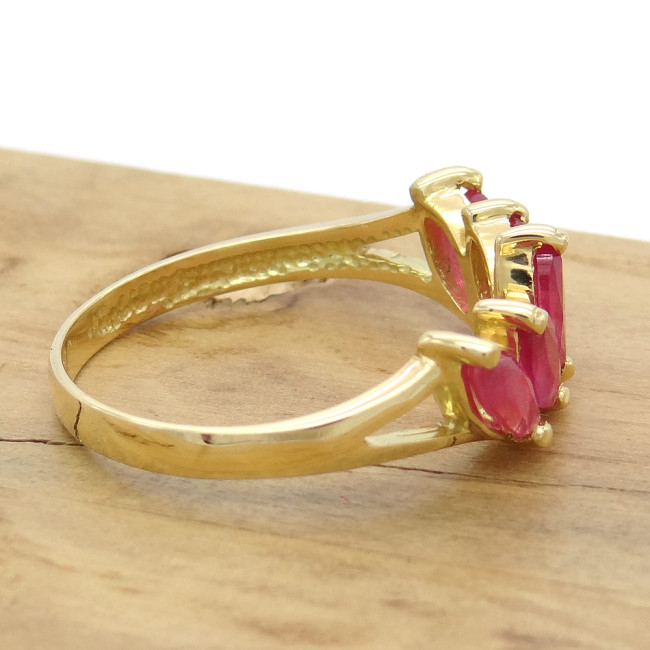 Meia Aliança Tiara com 5 Rubis, em Ouro Amarelo 18 Kilates