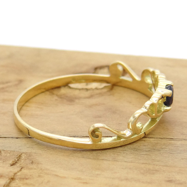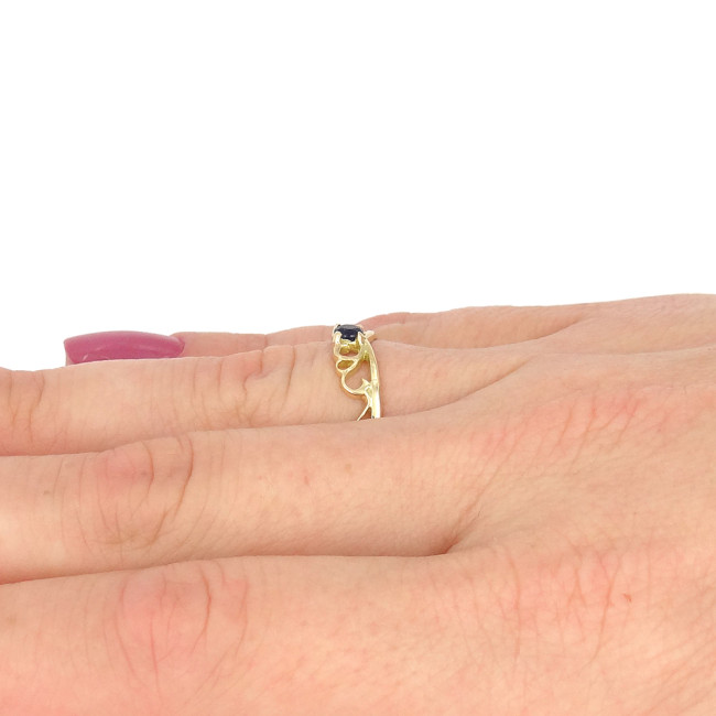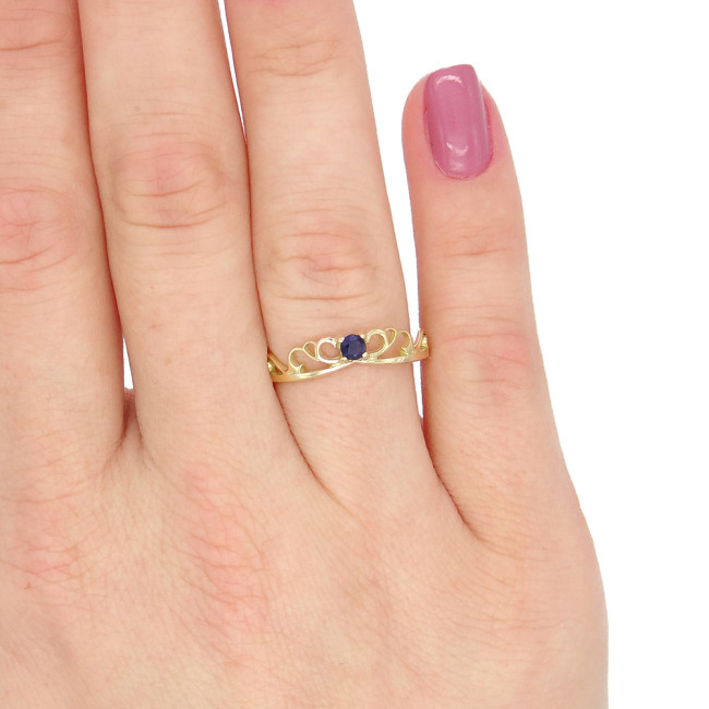 Anel Solitário Tiara com Safira, em Ouro Amarelo 18 Kilates