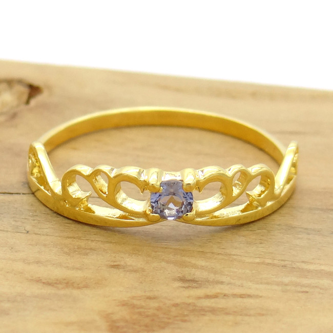 Anel Solitário Tiara com Tanzanita Natural, em Ouro Amarelo 18 Kilates