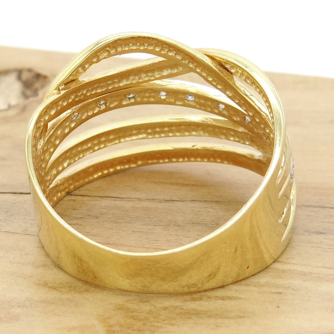 Anel Trabalhado com 10 Diamante, em Ouro Amarelo 18 Kilates