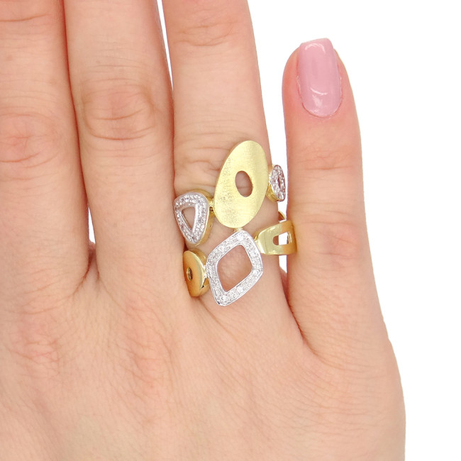 Anel Trabalhado com 20 Diamantes, em Ouro Amarelo 18 Kilates