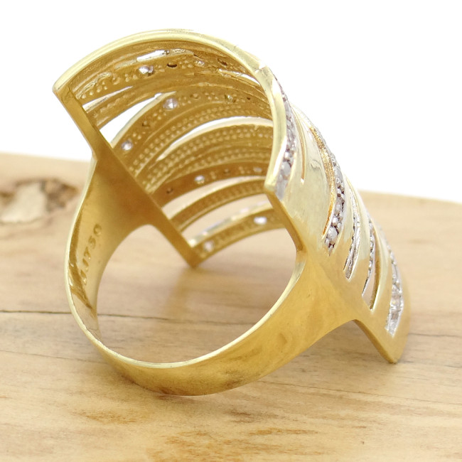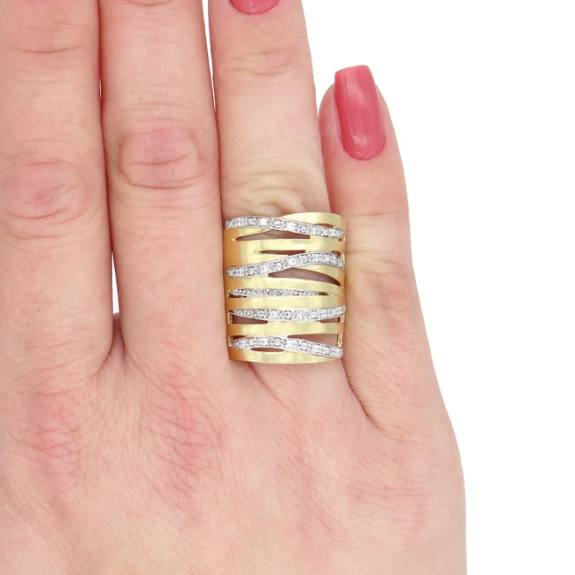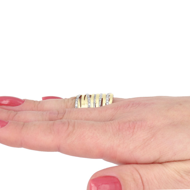 Anel Trabalhado com 21 Diamantes, em Ouro Amarelo 18 Kilates
