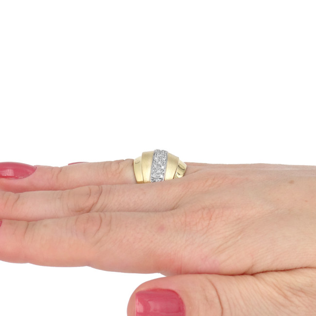 Anel Trabalhado com 22 Diamantes, em Ouro Amarelo 18 Kilates