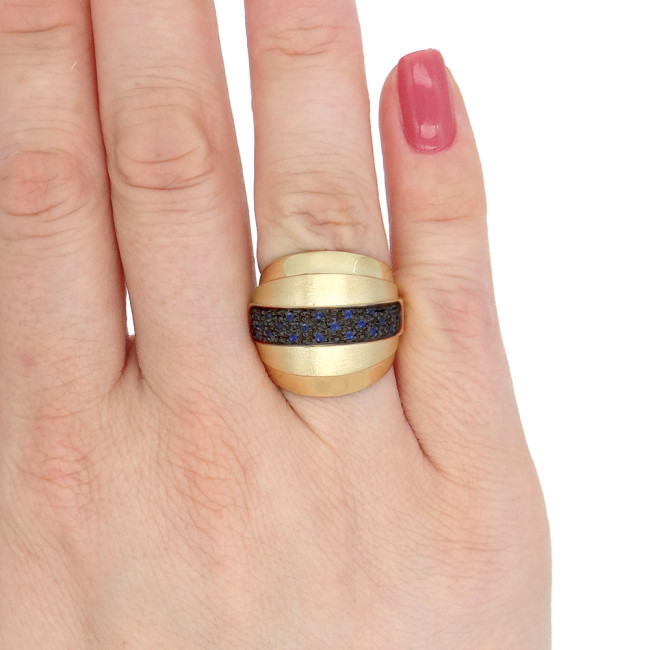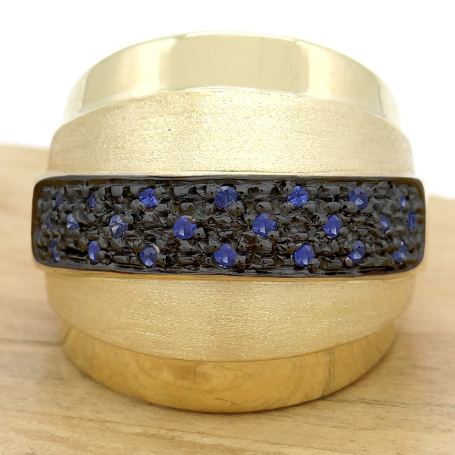 Anel Trabalhado com 22 Safiras, em Ouro Amarelo 18 Kilates