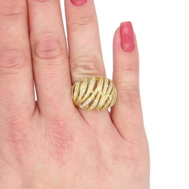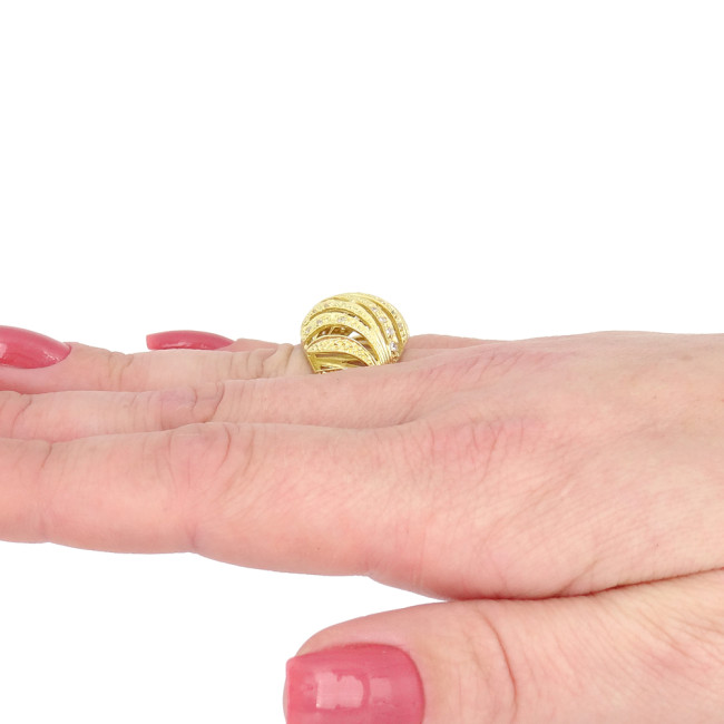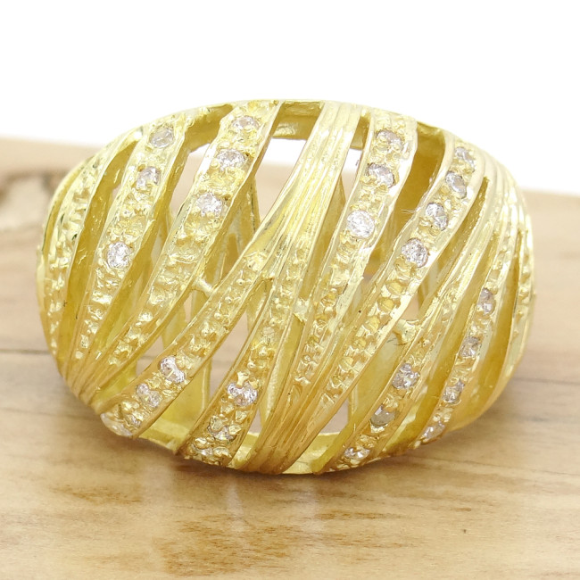 Anel Trabalhado com 28 Diamantes, em Ouro Amarelo 18 Kilates