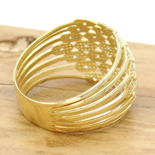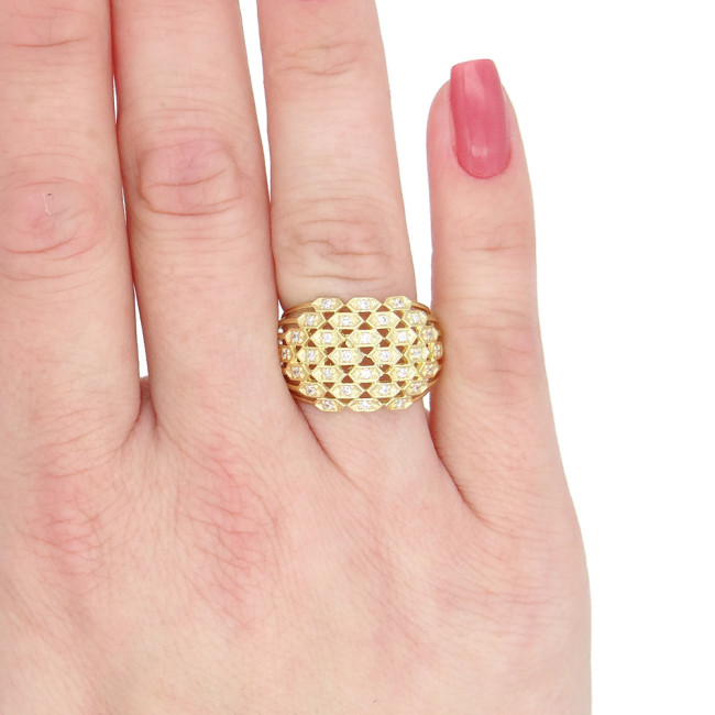 Anel Trabalhado com 30 Diamantes, em Ouro Amarelo 18 Kilates