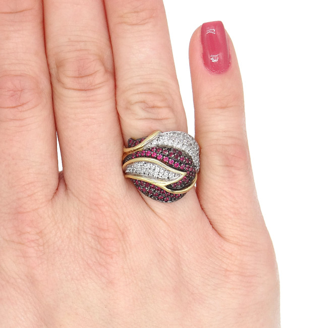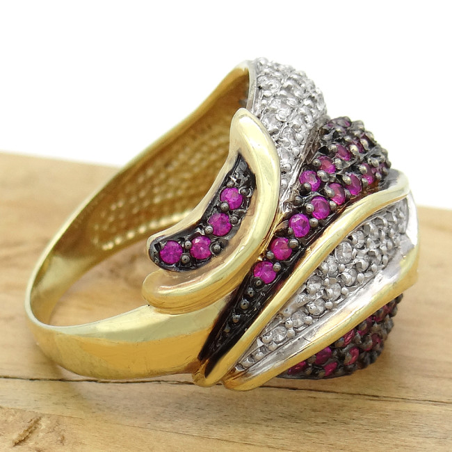 Anel Trabalhado com 55 Rubis e 58 Diamantes, em Ouro Amarelo 18 Kilates