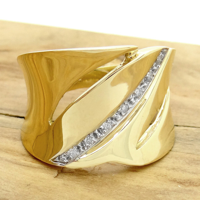 Anel Trabalhado com 7 Diamantes, em Ouro Amarelo 18 Kilates