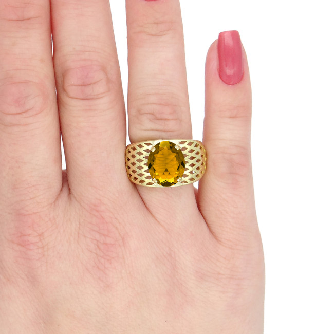 Anel Trabalhado com Citrino Oval, em Ouro Amarelo 18 Kilates