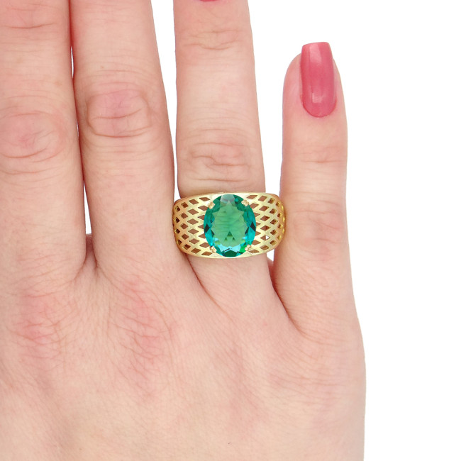 Anel Trabalhado com Cristal de Turmalina Paraíba Oval, em Ouro Amarelo 18 Kilates