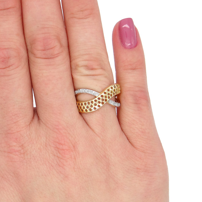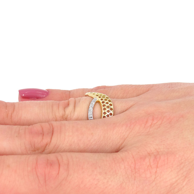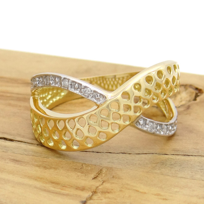 Anel Trabalhado com 10 Diamantes, em Ouro Amarelo 18 Kilates
