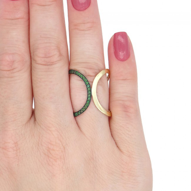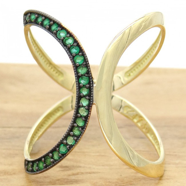 Anel  X com 23 Esmeraldas, em Ouro Amarelo 18 Kilates