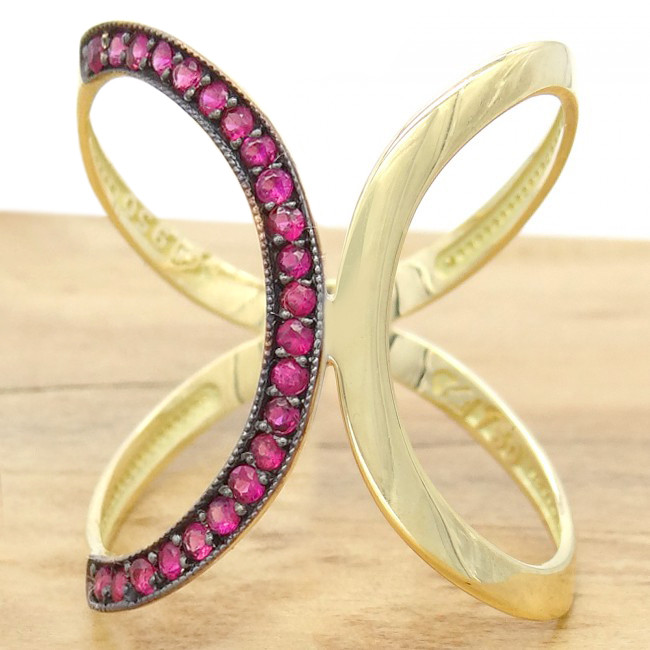 Anel  X com 23 Rubis, em Ouro Amarelo 18 Kilates