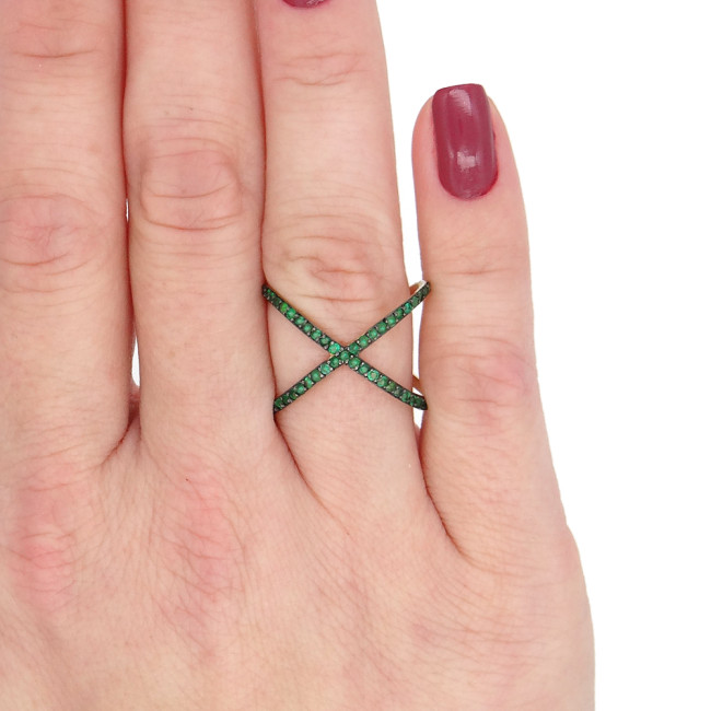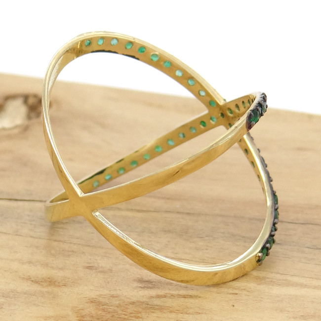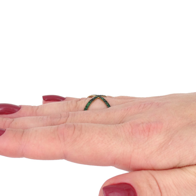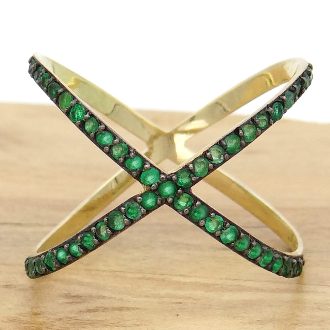 Anel  X com 45 Esmeraldas, em Ouro Amarelo 18 Kilates