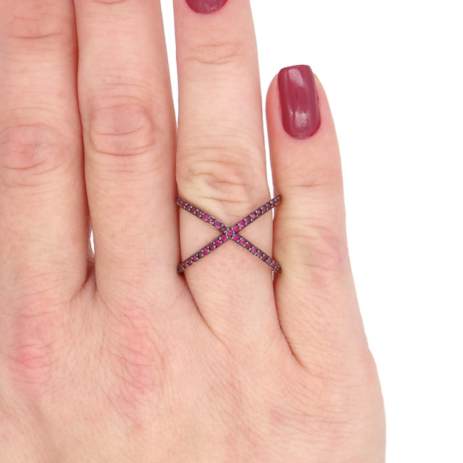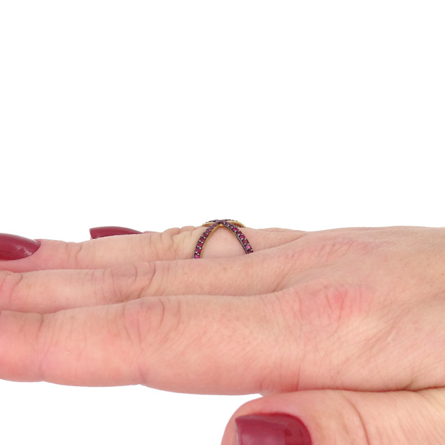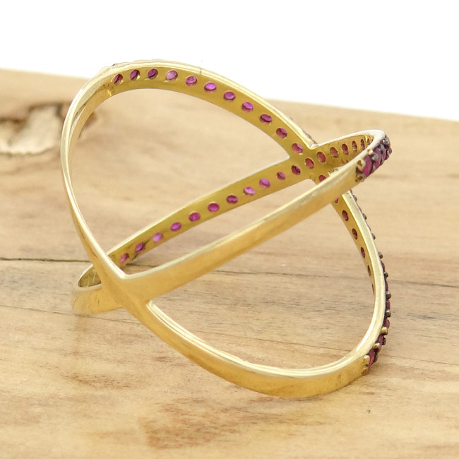 Anel  X com 45 Rubis, em Ouro Amarelo 18 Kilates